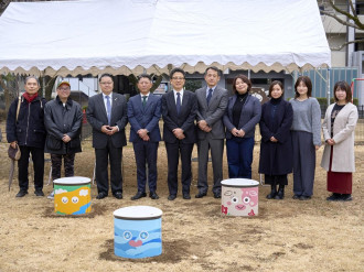 災害時に「かまど」として使える「かまどベンチ」のお披露目セレモニーが2月10日、白川公園(熊本市中央区草葉町5)で行われた。
