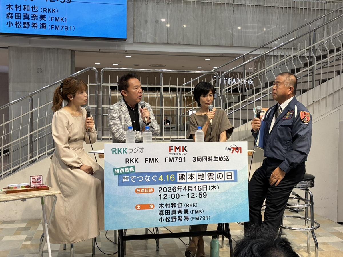 熊本のラジオ3局による特別番組「声でつなぐ4.16 熊本地震の日」の公開放送が4月16日、鶴屋百貨店(熊本市中央区手取本町)サテライトスタジオで行われた。