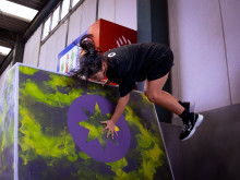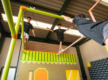 パルクールは、走る・跳ぶ・上るなどの基本動作を組み合わせ、障害物を乗り越えるフランス発祥のスポーツ。施設を運営する後藤夏槻さんはスポットで指導してきたが、無駄なことに価値を見いだしてほしいと施設の常設に踏み切った。店舗面積は約40坪。使用する器具の多くを手作りしたという。