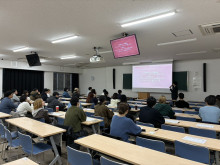 講義では、就職、結婚、出産、資産形成といったライフイベントに関する基礎知識を紹介。日本では100歳まで生きたいと考える人の割合が諸外国より低いことや、個人金融資産の伸びが米国に比べて小さいといったデータも示した。終身雇用が前提ではなくなった現在、主体的にキャリアや資産形成を考える必要性を伝えた。