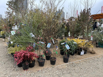 「くまもと春の植木市」が2月1日、JR熊本駅東側白川河川敷で始まった。
