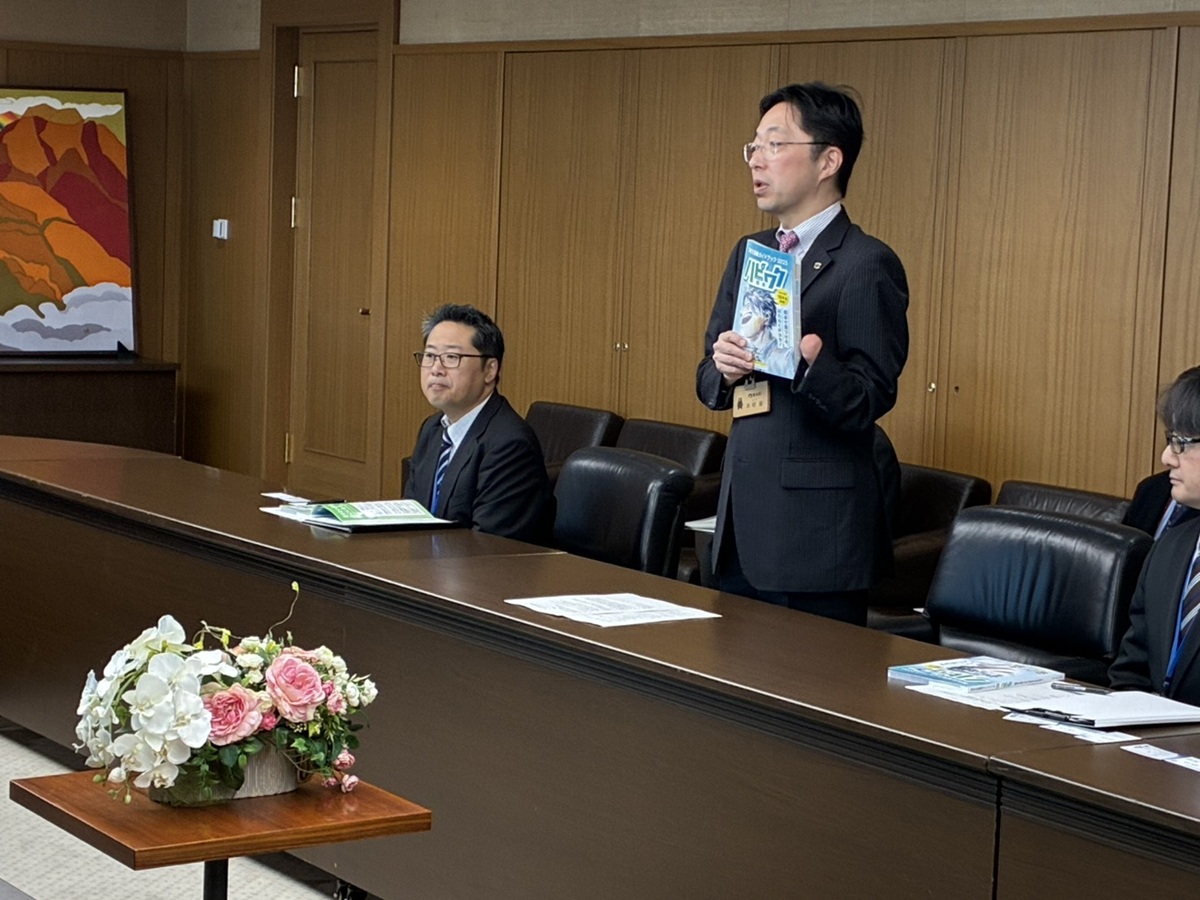 城野印刷所(益城町広崎)が12月22日、同社が製作した就職活動ガイドブック「ハピワク熊本」を熊本県に贈呈した。