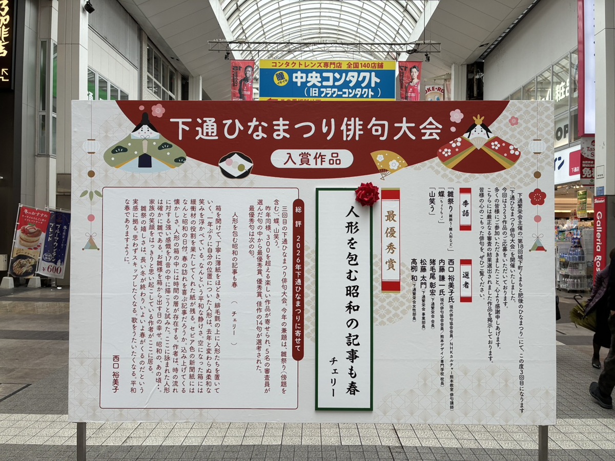 「城下町くまもと 肥後のひなまつり」が2月27日~3月4日、下通アーケード(熊本市中央区)で開かれた。