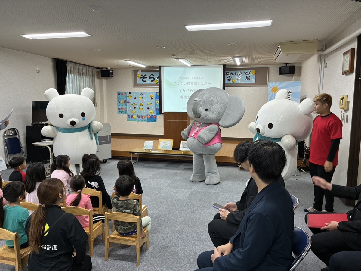 式典に参加した3体のキャラクター、左から「そら」「パオくん」「べあ」