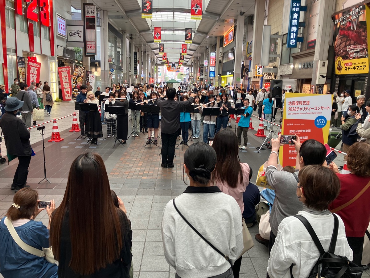 「地震復興支援チャリティーコンサート」が4月12日、サンロード新市街(熊本市中央区新市街)で行われた。