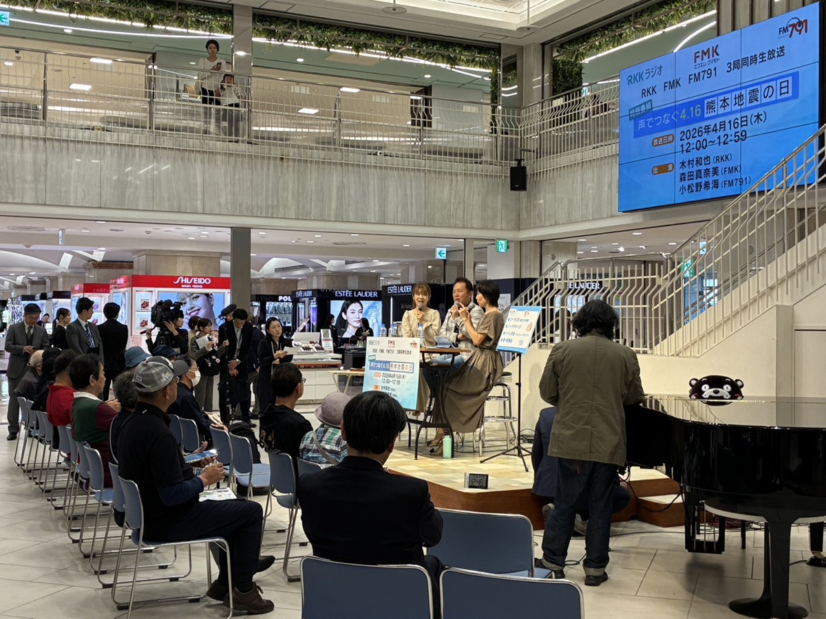 熊本のラジオ3局による特別番組「声でつなぐ4.16 熊本地震の日」の公開放送が4月16日、鶴屋百貨店(熊本市中央区手取本町)サテライトスタジオで行われた。