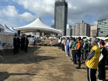 白川流域住民を対象に、平常時から災害への備えを促し、危機意識の啓発を図るイベント「白川水防災体験」が10月26日、白川橋左岸緑地(熊本市中央区本山)で開催された。